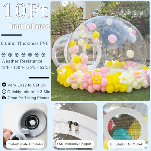 Inflatable Bubble House for Kids, 10ft Clear Inflatable Tent with Blower and Pump for Commercial Use, Luxury 100% PVC Bubble House for Outdoor, Patio, Festival,