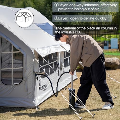 - 🏕️【Easy to install And Pack up】No poles needed! Our Inflatable Tent Come with hand inflate pump ,tent can be Inflated in 5 minutes and Set up within just 10 Minutes. The Integrated Air Tent Design Optimizes Camping Experience. And it is also faster when putting off the tent.