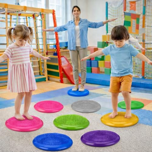 - ★ Sensory-Friendly Cushion – Perfect for Active Kids Designed for children who need to stay engaged, the sensory wobble cushion provides gentle movement throughout the day. It helps develop strength, balance, coordination, and flexibility through continuous micro-motions.
