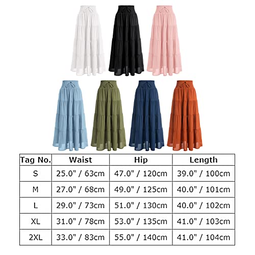 IWEMEK Women Summer Boho Maxi Skirt Ruched Elastic High Waist Casual Ruffle Flowy Swing Tiered Pleated A-Line Holiday Casual Gypsy Vintage Long Skirts Full Length Navy Blue XXL