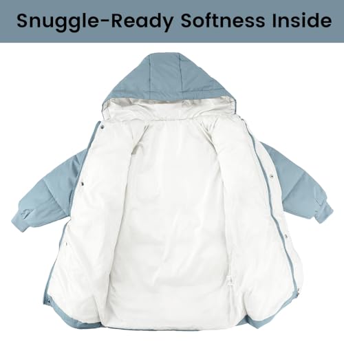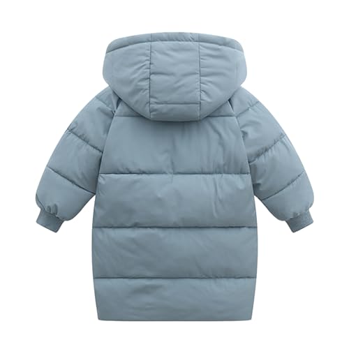 JiAmy Kids Boys Girls Down Jacket Hooded Long Toddler Warm Winter Coat Snow Outerwear Zipper Button Up Windproof Clothes 3-4 Years Blue