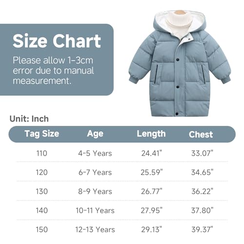 - MULTIPLE SIZES: We have 7 sizes to cover different age groups, suitable for children's winter coats from 2 Years to 13 Years (90 – 150 cm). Please check our size chart before buying. If you have any questions about our children's coats, please contact us.