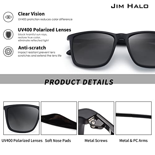 Jim Halo Retro Square Polarized Sunglasses for Men – Classic Style for Driving, Cycling & Outdoor Sports – Black & Grey