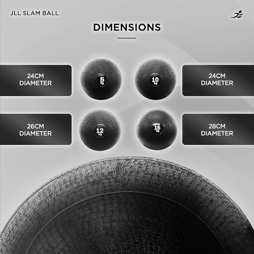 JLL® Slam Ball – (12kg) No Bounce, Heavy Duty Rubber, Available in 5kg, 10kg, 12kg & 15kg – Ideal for Cross Fit, Core Workouts, Strength Training, HIIT Workouts