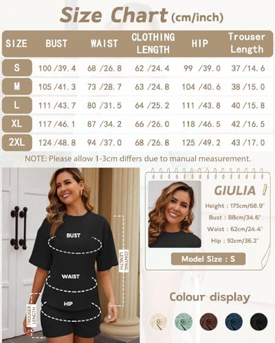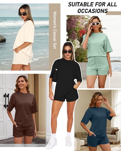 - Two Piece Tracksuit Lounge Wear Sets:Women's 2 piece casual lounge sets features a crew neck, solid color, oversized, short sleeve t-shirts tops with high waisted beach shorts with two pockets for a more comfortable and flattering fit to show off your pretty figure.