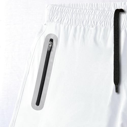 JRC Just Royal Clothing Mens Running Shorts with 2 Zip Pockets, Lightweight Shorts for Workout & Gym (White, XL)