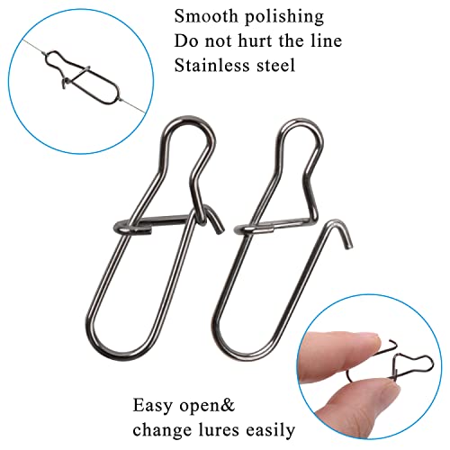 Fishing Duo Lock Snaps Swivel Nice Snaps Stainless Steel Fishing Lure Hook Connector High-Strength Fishing Snap Clip Fishing Tackle for Saltwater(1#-39lb-100pcs)