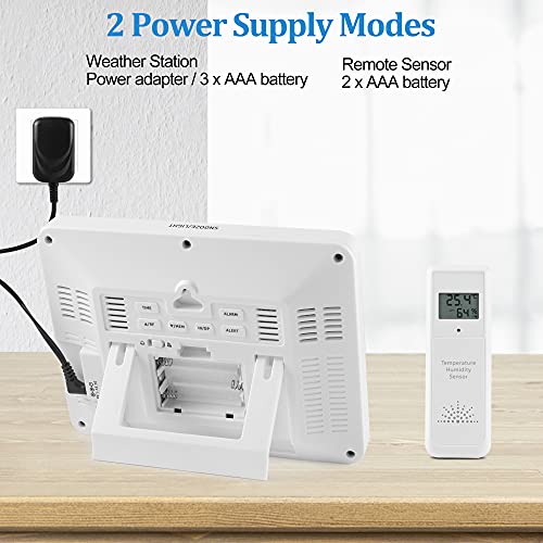 This model suits people who want dependable readings from multiple locations and prefer a clear easy to read screen. It works well for households monitoring comfort levels, gardeners checking outdoor conditions, or anyone managing spaces where temperature and humidity matter. It is also ideal for users who want automatic time updates and alarm functions alongside climate monitoring.