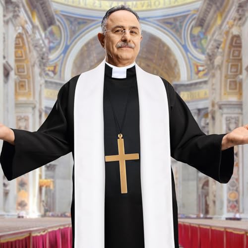 The Kavoc 5-Piece Priest Costume Accessories Set has everything you need to take on the role of a pastor, exorcist, or priest at your next party. With a flowing black robe, classic white shawl, oversized gold cross, and silver-rimmed glasses, this costume brings instant recognition and impact. Whether it’s for Halloween, a stag night theme, or stage performance, this set is both versatile and eye-catching.