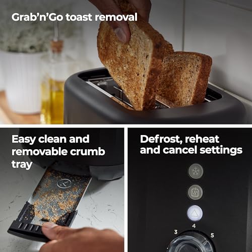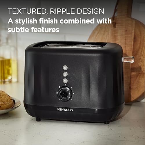Kenwood Ripple Toaster TCP06.000BK, 2 Slot Toaster with 7 Browning Settings, Reheat, Defrost and Cancel Functions, Pull Crumb Tray, Cord Storage, 850W, Midnight Black