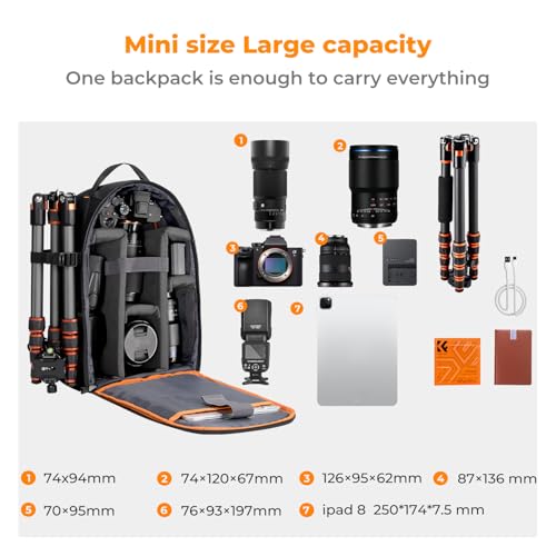 K&F CONCEPT Lightweight Camera Backpack for Photographers Camera Bag Travel Case for Men Women
