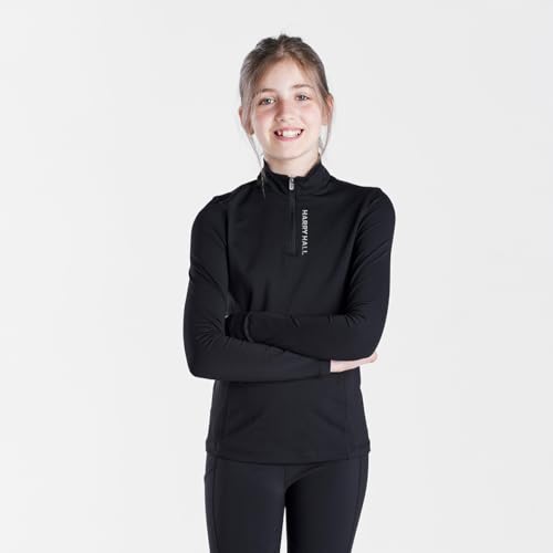 Kids Thermal Base Layer – Warm Brushed Zip Top for Riding, Cycling & Outdoor Play – 11-12 Years – Black