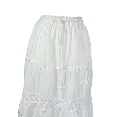 Kiran Fashion Cotton Maxi Skirt Summer Boho Festival Lined One Size Fits 10 12 14 16 18 20 (White)