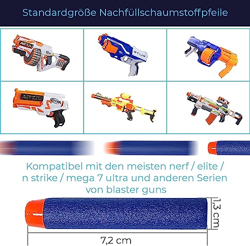 The König Design 100pcs Foam Dart Refill Pack is built for players who never want the action to stop. Each dart is 7.2cm long, the standard size for Nerf N-Strike Elite and Fortnite blasters, making them an easy replacement or upgrade for kids who love competitive Nerf games.