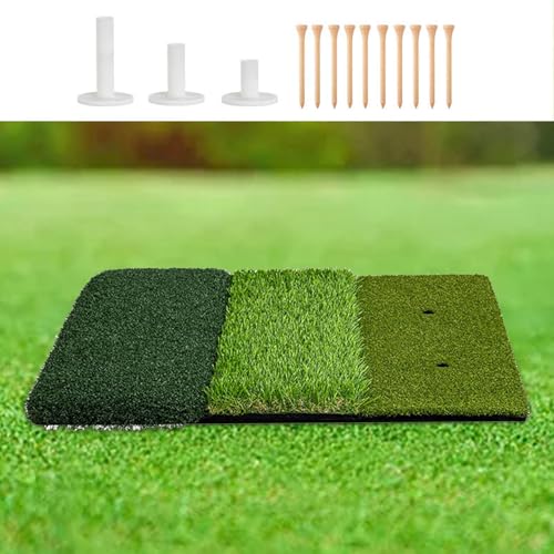 - 【NONSLIP RUBBER BASE】: Golf Hitting Mat indoor outdoor is made of quality rubber soft base and grass, resists tearing, fading, wearing and separation, stable.