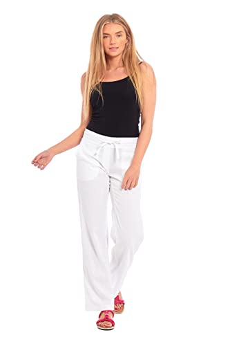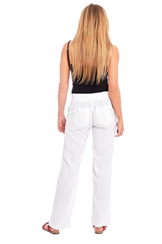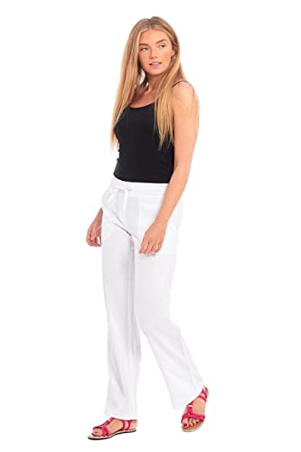 kraftd Womens Linen Trousers Casual Bottoms Elasticated Drawstring Waist Pants With Pockets