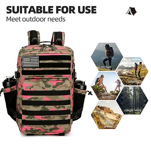 KXBUNQD Military Tactical Backpack for Men and Women Army 3 Days Assault Pack Bag Large Rucksack with Molle System, Pink Camo, Rucksack Backpacks