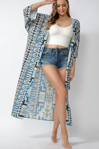 L-Peach Women's Boho Kimono Long Sleeves Nightgown Oversized Loungewear Beach Robes Cover-ups Dress Sarong Pareo