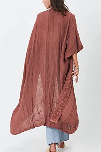 L-Peach Women's Lace Bohemian Kimono Cardigan Cover up Maxi Beach Dress Robe