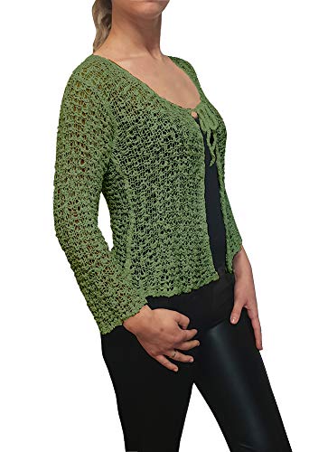 Ladies Popcorn Style Crochet Plain Stretch Fish Net Tie at Waist Bolero Shrug Open Cardigan (One Size, Sage Green Cardigan)