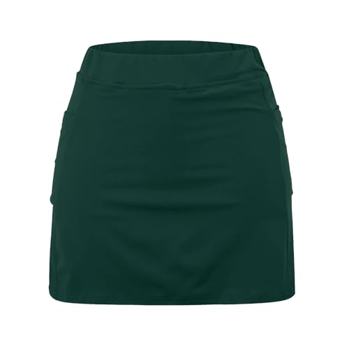 Ladies Skort, High Waist Ladies Skirts with Shorts Underneath, Womens Skorts with Pockets, Golf Athletic Basic Tennis Skirt, School Skirt with Shorts Dark Green