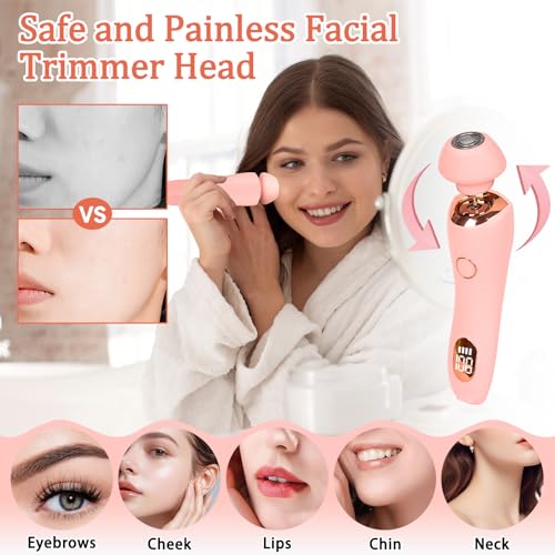- Electric Razor for Women: The lady shaver is compatible with two shaving heads, including a facial hair remover for women head and a body hair trimmer head. Just rotate the head and pull the shaving head out, you can replace them easily. Multi-functional hair removal system help customize hair shaving on your face, arms, legs, body, armpits and bikini lines area, etc in minutes without any residue effectively and smoothly.