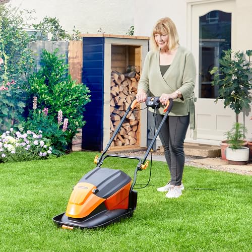 LawnMaster 1500W 33cm Electric Hover Mower – Grass Collection Box, Adjustable Cutting Heights, for Small to Medium Lawns, 2 Year Guarantee