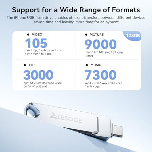 - Reliable Customer Service & Easy Use:Enjoy the convenience of a high-quality USB-C memory stick backed by professional customer support. Note: For iPhone/iPad, please download the "LESOGE" app from the App Store to enable full functionality. Android and PC devices can use the drive immediately without app installation.
