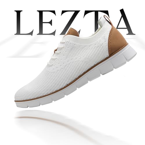 LEZTA Men's Casual Dress Sneakers Business Lightweight Oxfords Arch Support Walking Shoes(White C Size 8)