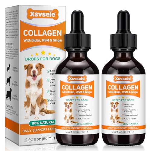 - Premium Liquid Collagen for Dogs – Our liquid collagen supplement for dogs contains premium grass-fed collagen with biotin, MSM & ginger to to improve your dog's overall health and vitality, support joint & digestive care, skin & coat health