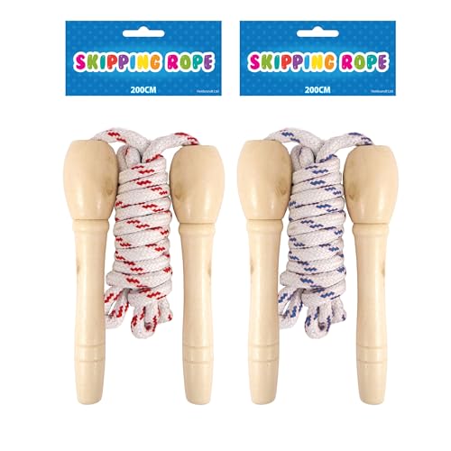 Lizzy | Skipping Rope | 2 Pack, 200cm, Wooden Handles, Assorted Colours | Classic Design, Comfortable Grip, Durable Rope | Fitness Toy for Kids Outdoor Games & PE