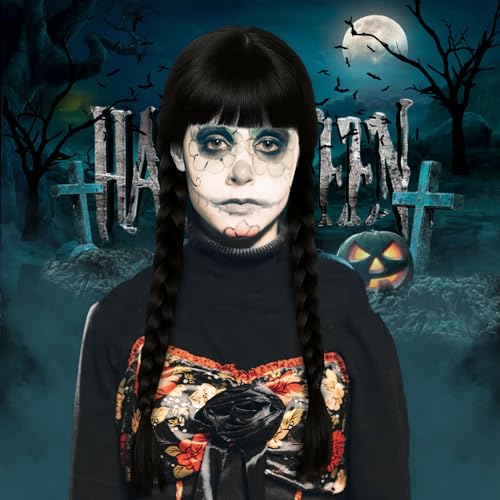 This wig is ideal for creating gothic school girl costumes, Halloween fancy dress, anime cosplay, and themed parties. It works just as well for adults wanting a dramatic gothic style as it does for kids dressing up for discos or school events.