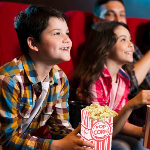 - Premium Grease-Resistant Material: Crafted from durable 40gsm oil-proof paper, these popcorn boxes for party effectively prevent grease absorption from buttery popcorn, fried snacks and oily foods, keeping hands clean and dry