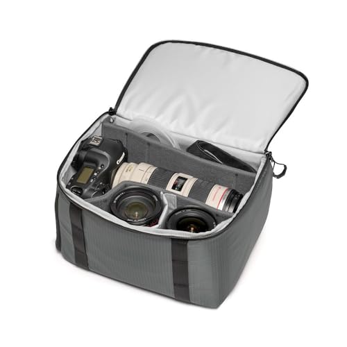 Position the insert inside your chosen bag so the opening aligns with how you access your gear. Configure the dividers around your camera body first, then add lenses and accessories, keeping heavier items close to the centre for balance. Make sure there is no empty space where gear could shift during movement.