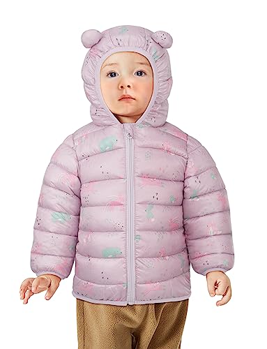 Maeau Baby Hooded Down Jacket Toddler Boys Girls Printed Puffer Coat Cute Warm Winter Padded Snowsuit Outerwear B Purple 6-12 M