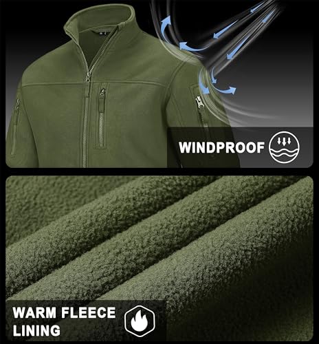 MAGCOMSEN Men's Fleece Jackets Casual Full-Zip Stand Collar Coats Warm Winter Windproof Tactical Jacket with Pockets