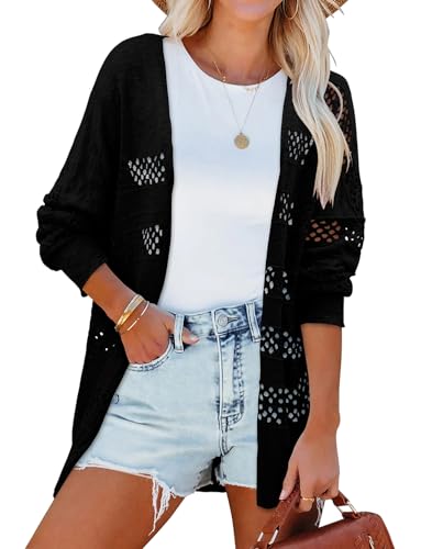 OUGES Women's Black Cardigan with Pockets Long Sleeve Casual Open Front Lightweight Ladies Cardigan(Black,XL)