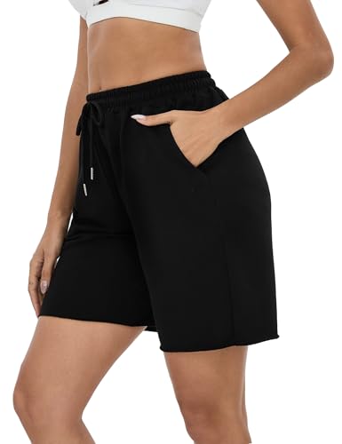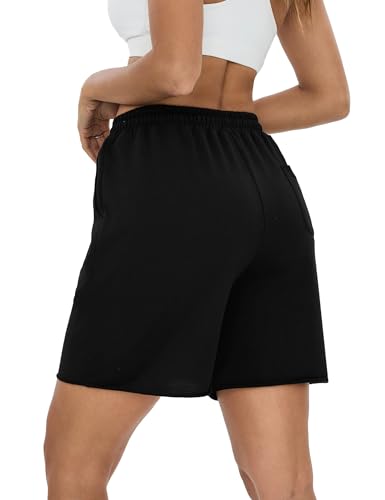 Marvmys Women's Running Shorts Casual Lounge Bottoms High Waist Summer Athletic Sweat Jogging Sport Workout Ladies Soft Cycling Short with Pockets Black XL