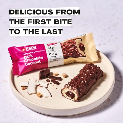 MaxiNutrition Creamy Core Protein Bar – Snack – Fat-Free, Low in Sugar – 14g Protein – Dark Chocolate Coconut, 182 kcal per Serving, 12 x 45g