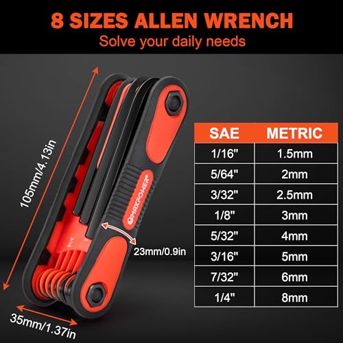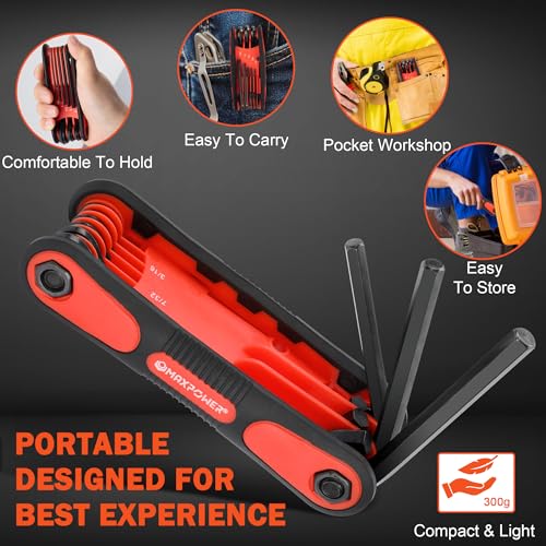 MAXPOWER Folding Hex Key Set, 16-piece Allen Key Wrenches, Metric & SAE Size Hex Keys, Portable Allen Key Set for Home Repair, General Applications and DIY Craft