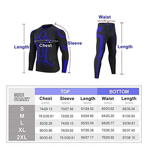 MeetHoo Men's Thermal Underwear Set, Base Layer Long Sleeve Top Long Johns Compression Shirt Bottom Suit Winter Warm Running Sport Blue
