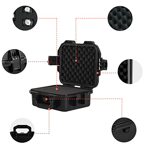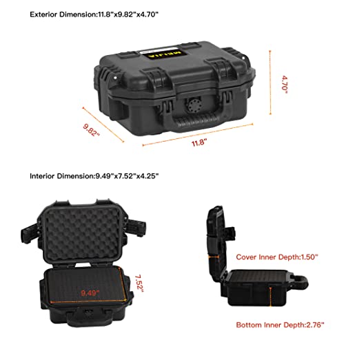 - Outside Dimension:11.8"x9.82"x4.7".Inside Dimension:9.49"X7.52"X4.25".Cover Inner Depth:1.5".Bottom Inner Depth:2.76". Weight With Foam:3.00 lbs.Protecting All That You Value such as lens,cameras,drones,watchs.