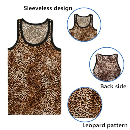Men's Leopard Tank Top, Soft Sleeveless Slim-fit Athletic Vest for Men, Breathable Tight Undershirts for Workout Running Sports, Sexy Leopard Print T-Shirt Tops for Party Rave Disco Club Performance