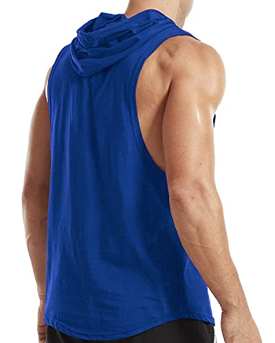 Men's Workout Sleeveless Hoodies Athletic Training Cotton Gym Hooded Tank Tops Sports Bodybuilding Fitness Muscle T Shirts 01 Blue M
