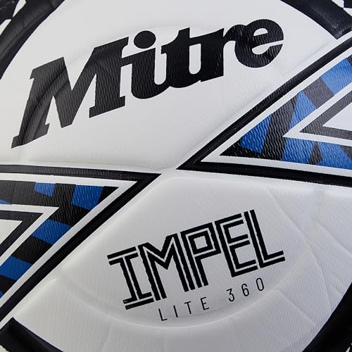 Mitre Impel Lite 360 Football | Highly Durable | Lightweight Ball, White/Black/Blue, 5