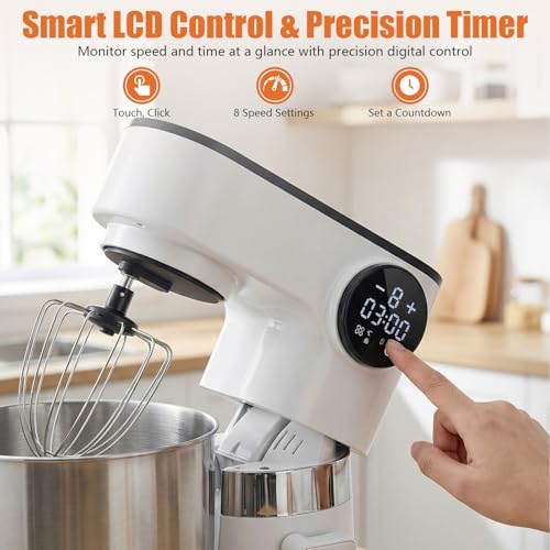 - ✨Upgraded LCD Control: No more standing over the mixer. Features a smart LCD display that clearly shows remaining mixing time, allowing real-time speed adjustment for different recipes. This advanced control system eliminates guesswork, helps prevent over-mixing or under-whipping, and ensures consistently perfect results for every bake.
