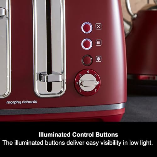 Morphy Richards Accents Toaster 4 Slice Toaster, Variable Browning, Wide Slots, High Lift, Illuminated Buttons, Removable Crumb Tray, Cancel, Reheat, Defrost, Integrated Cord Storage, Rhubarb, 242051
