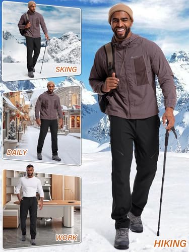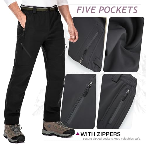 mosingle Mens Waterproof Fleece Lined Walking Trousers Soft Shell Hiking Warm Winter Ski Snow Pants with Zipper Pockets #6078-Black-32