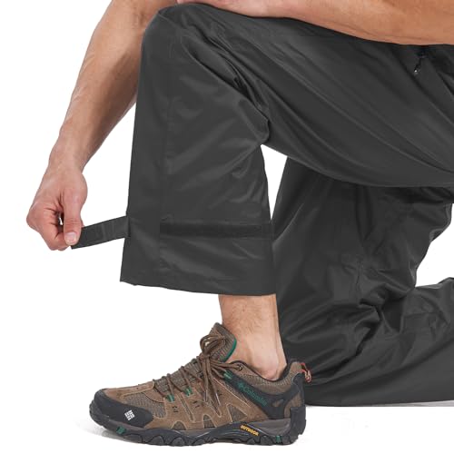 33,000ft Men's Waterproof Trousers Packable Rain Overtrousers Outdoor Lightweight Windproof Pants for Rainwear Walking Hiking Cycling Black M-32L