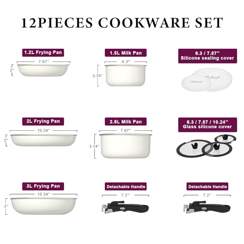 • Motase Pots and Pans Set, Nonstick Cookware Set Detachable Handle